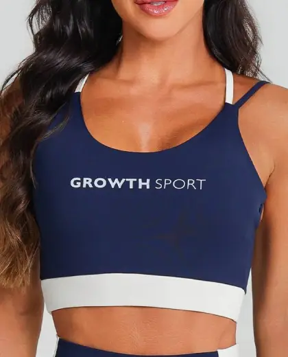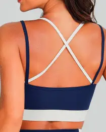Top Growth Tiras Cruzadas Alças Contrastantes Azul Marinho