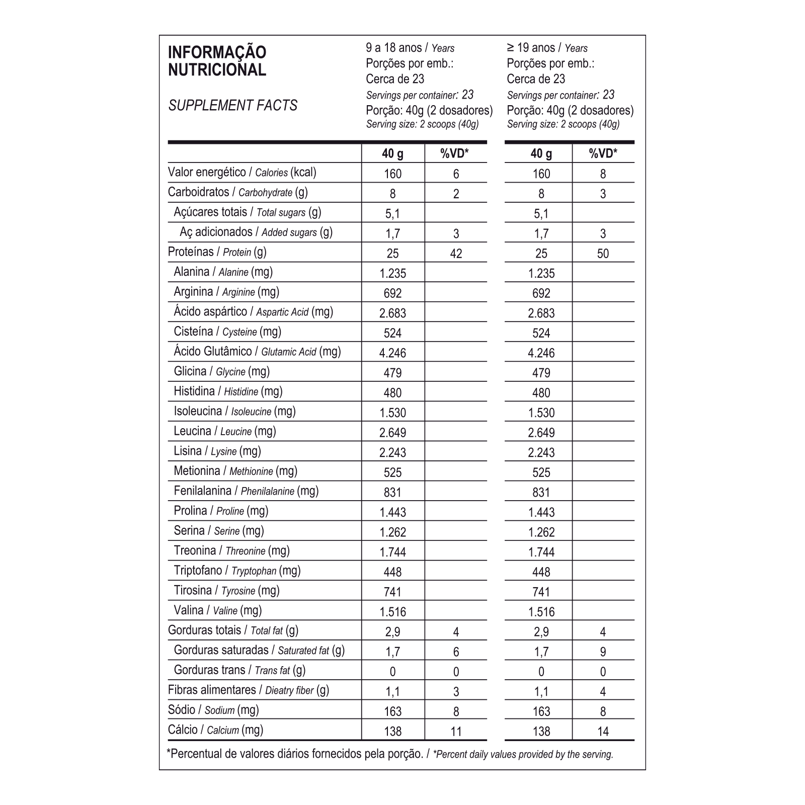 Com até 26g de proteína por dose, provenientes da mistura de proteínas concentrada, isolada e hidrolisada, ele oferece suporte nutricional completo para a hipertrofia e a recuperação muscular.
