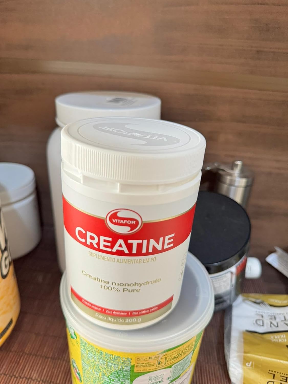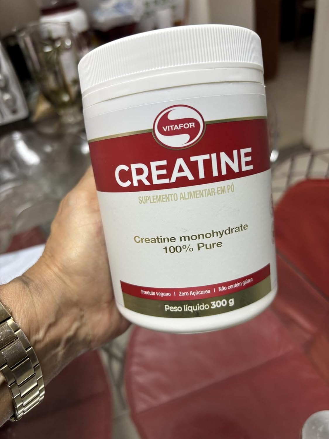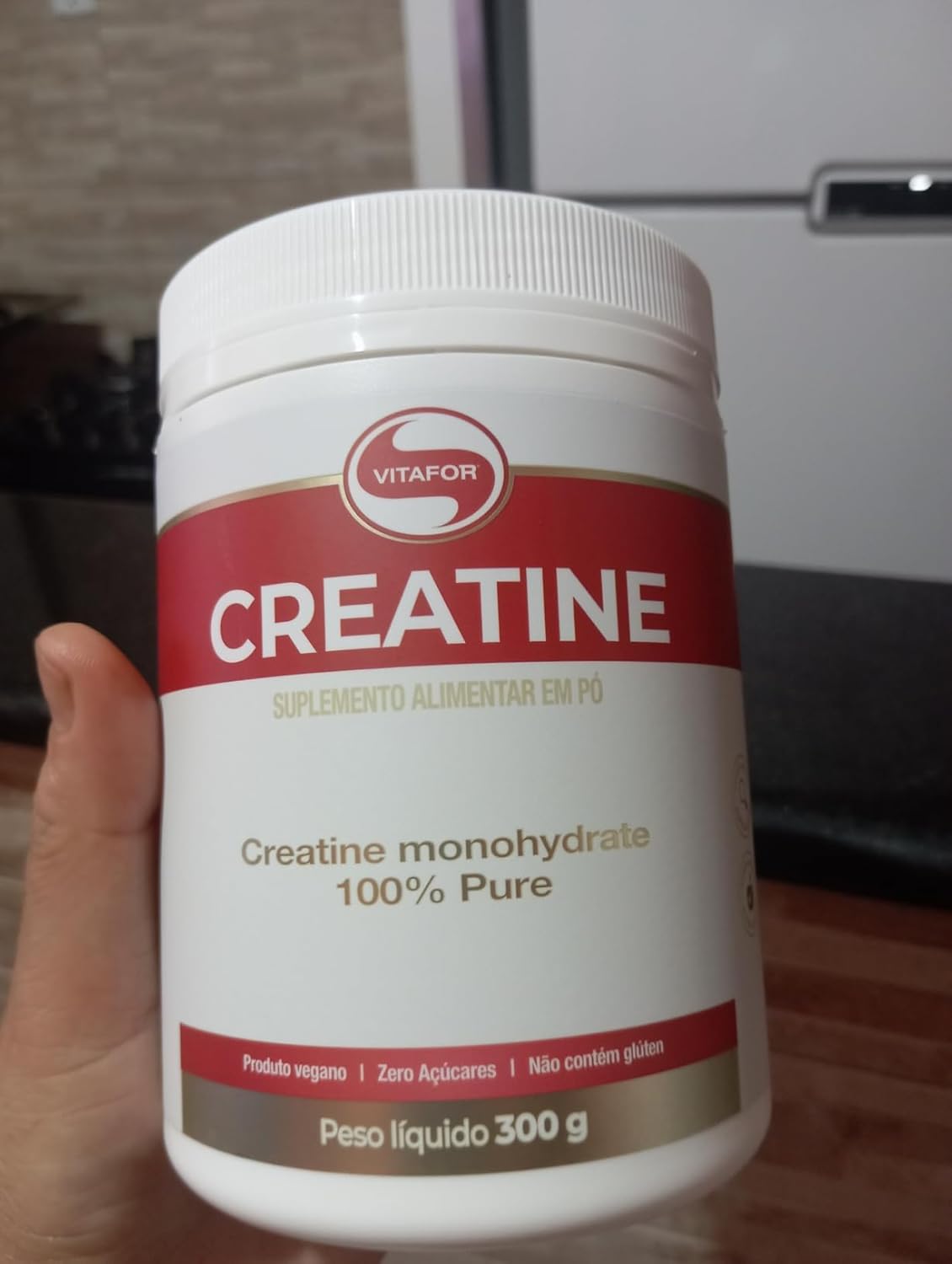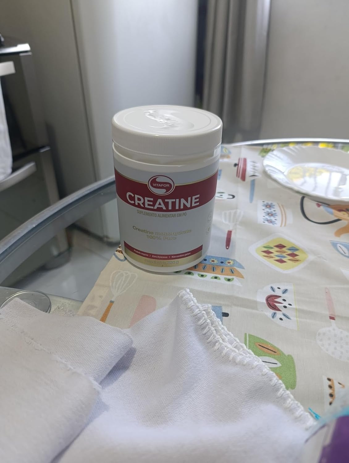 Já estamos no segundo pote. Creatina se comporta conforme esperado ao tentar misturar com água. Comprarei mais vezes.