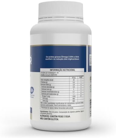 Possui alta concentração dos derivados de ômega-3: EPA (ácido eicosapentaenóico) 990 mg e 660 mg de DHA (ácido docosahexaenóico)