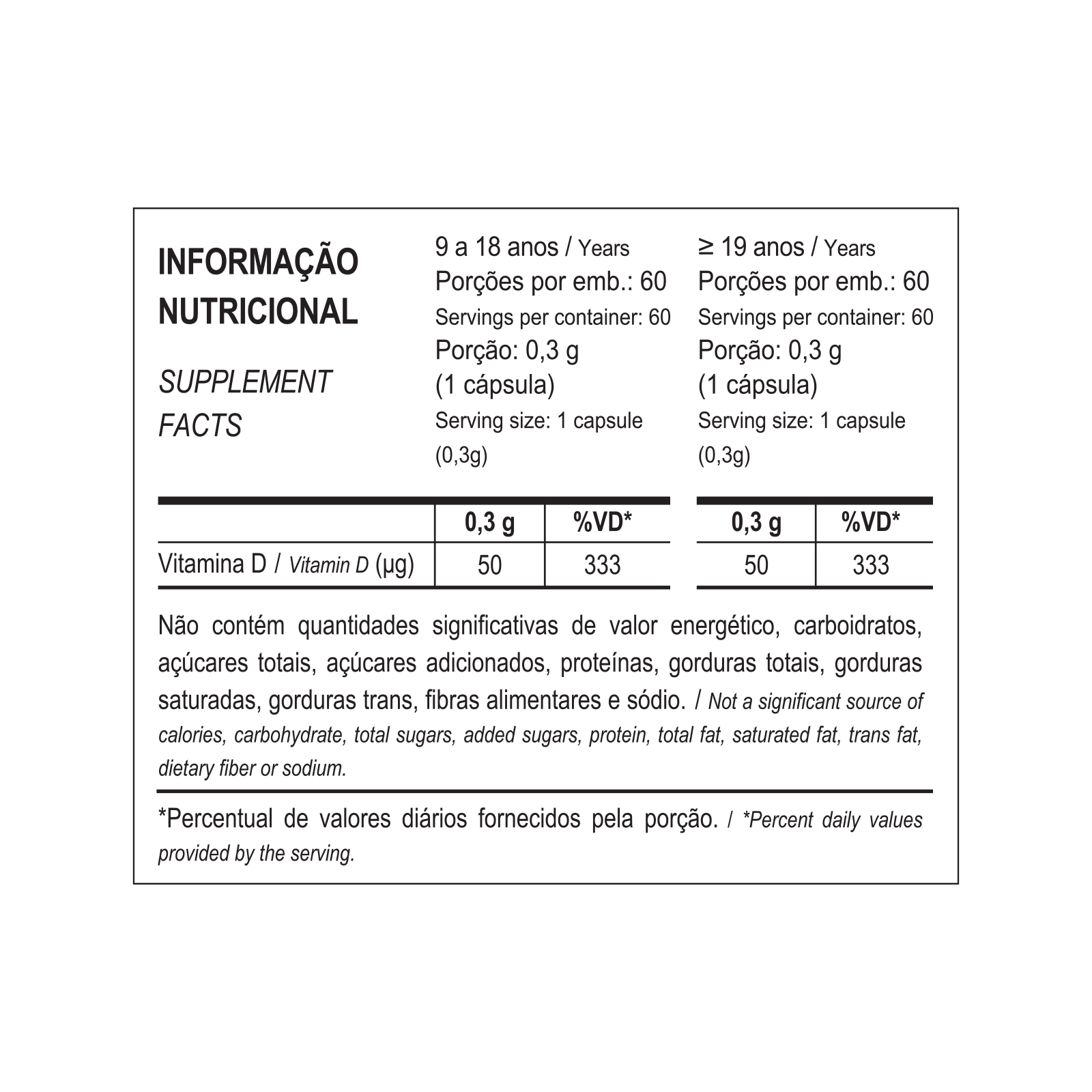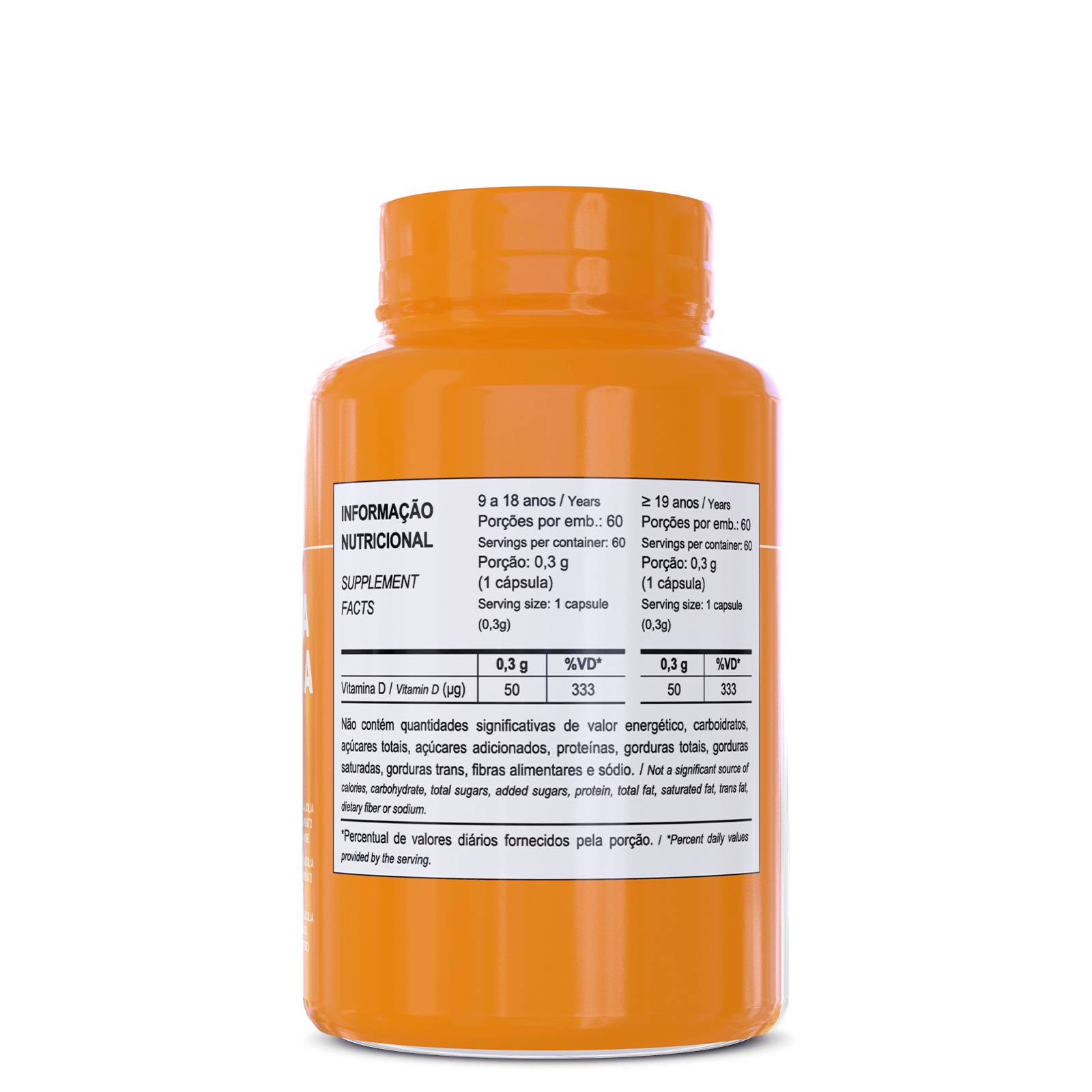 Com 2.000 UI por c�psula de colecalciferol (a forma mais potente e biodispon�vel de vitamina D), este suplemento oferece suporte completo para o seu organismo especialmente se voc� treina, trabalha em ambientes fechados ou tem baixa exposi��o solar.