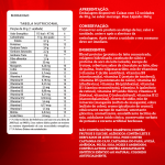 - Blend proteico (proteína concentrada do leite, colágeno hidrolisado e proteína de soro do leite isolada), xarope de frutose, cobertura sabor de chocolate ao leite, óleo de palma, frutooligossacarídeos (FOS), cacau em pó solúvel, mix de vitaminas e minerais (ácido ascórbico, nicotinamida, acetato de DL-alfatocoferila, D-pantotenato de cálcio, sulfato de manganês, cloridrato de piridoxina, riboflavina, tiamina mononitrato, palmitato de retinila, sulfato cúprico, ácido N-pteroil-L-glutâmico, picolinato de cromo, D-biotina, colecalciferol e cianocobalamina), cloreto de sódio, edulcorante xarope de maltitol, umectante glicerol, aromatizante, emulsicante lecitina e conservante sorbato de potássio. ALÉRGICOS: CONTÉM LEITE E DERIVADOS DE DERIVADOS DE SOJA. PODE CONTER AMENDOIM, AMÊNDOAS, AVELÃ, CASTANHA DE CAJU, CASTANHA DO PARÁ, PECÃS E NOZES. CONTÉM LACTOSE. NÃO CONTÉM GLÚTEN. DIABÉTICOS: CONTÉM FRUTOSE E GLICOSE.