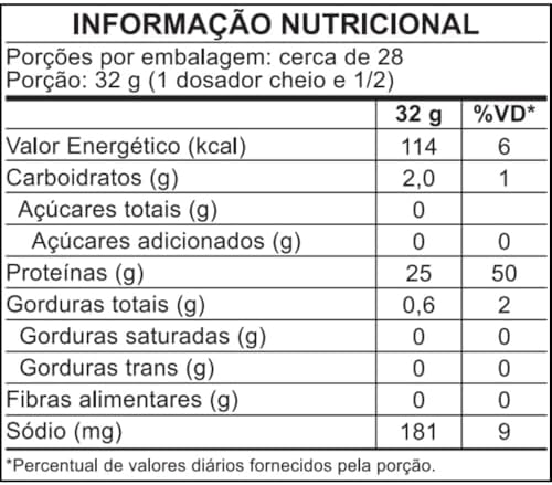 Pure Blend 100% Protein: uma fórmula premium desenvolvida para quem busca alto desempenho, saúde integral e uma nutrição limpa, eficaz e completa. Sendo zero lactose. Essa composição oferece suporte completo para quem busca performance, longevidade e uma alimentação rica em nutrientes funcionais. Perfeito para quem prefere fórmulas mais leves e tolerantes. Uma opção inclusiva para diferentes perfis de consumidores e estilos de vida. Feito com ingredientes selecionados, sem glúten, corantes artificiais ou aditivos. Pure Blend entrega um sabor natural e agradável, perfeito para sua rotina. Cada porção entrega 25g de proteína de alta qualidade, combinando: Proteína Isolada da Ervilha – fonte vegetal nobre, com excelente perfil nutricional e leve para o organismo. Proteína Isolada do Soro do Leite (Whey Isolate) – padrão ouro em pureza e absorção. Colágeno Hidrolisado – aliado na manutenção da firmeza da pele, cabelo e unhas. Benefícios: Alta concentração de proteína por dose Apoio à recuperação pós-atividade física Fórmula leve, ideal para quem tem restrições alimentares Pele mais nutrida, unhas e cabelo mais resistentes Ideal para dietas equilibradas: sem adição de açúcares e com baixo teor de carboidratos Pode ser consumido com água, bebidas vegetais ou incluído em receitas práticas Sugestão de Uso: Adicione em sua coqueteleira 32g (1 dosador e meio) em 200ml de água ou bebida de sua preferência, e agite. Pode ser utilizado em receitas.