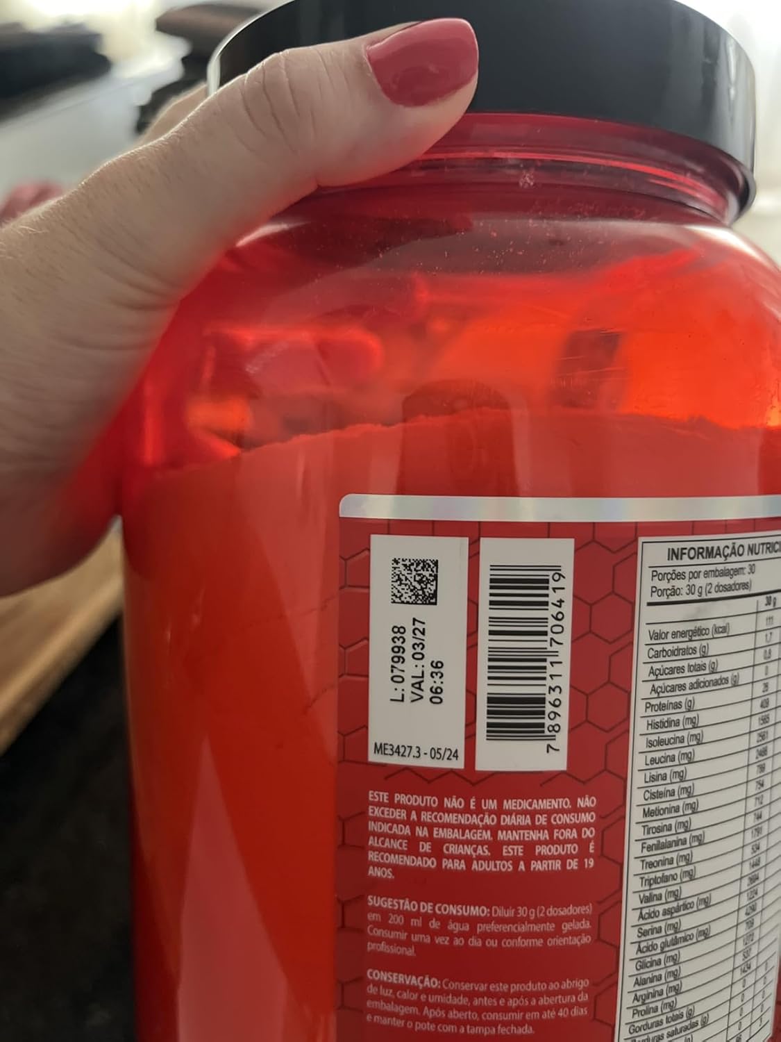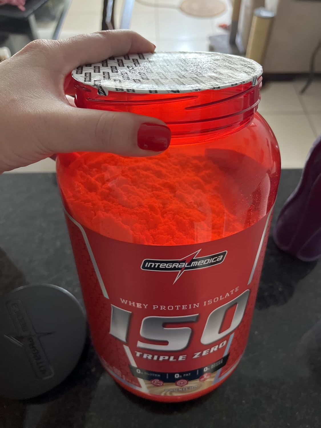 Veio com lacre certinho e bem embalado. Gostei do produto, não achei doce, dissolve bem na água ou batido com leite. Deixa uma textura mais espessa qndo batido com leite. Tenho intolerância a lactose, e em mim ele deu um pouco de efeito contrário nesse sentido, mas busco tomar com lactosil pra amortecer os efeitos.