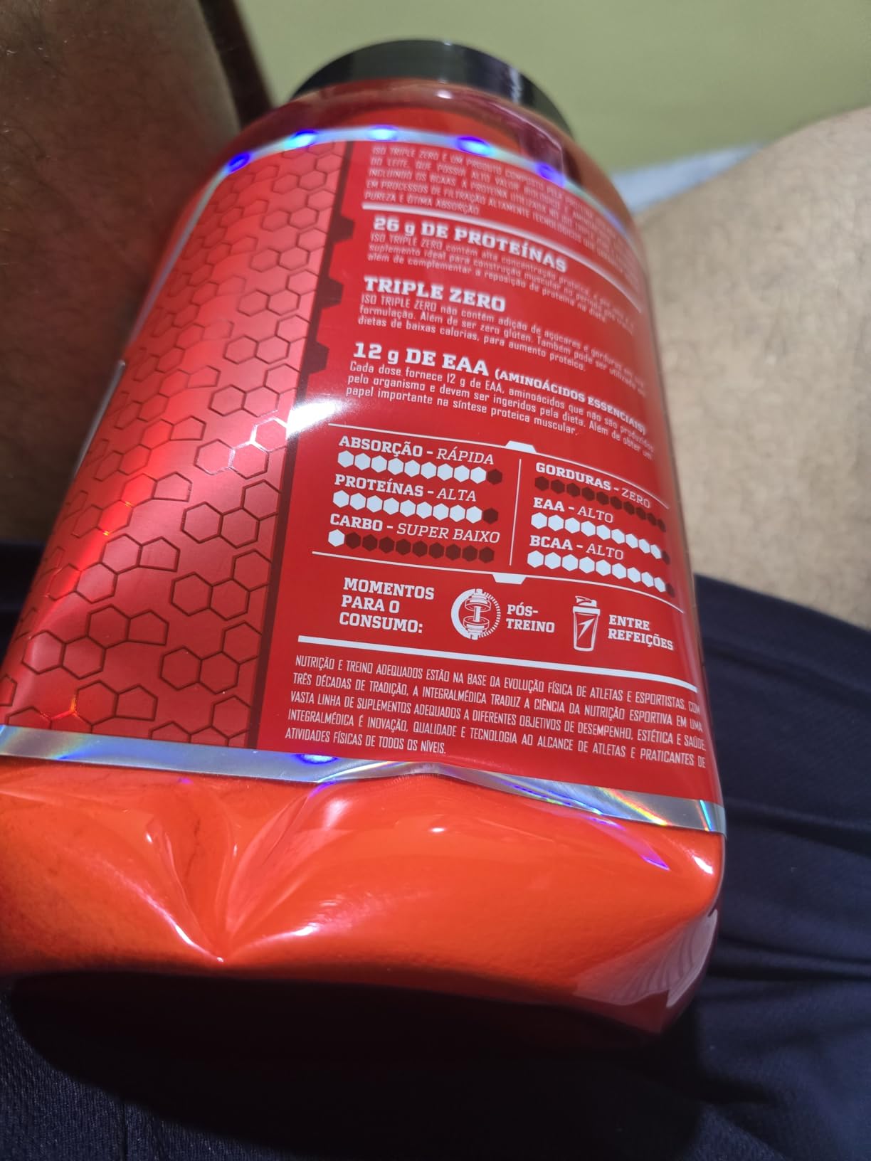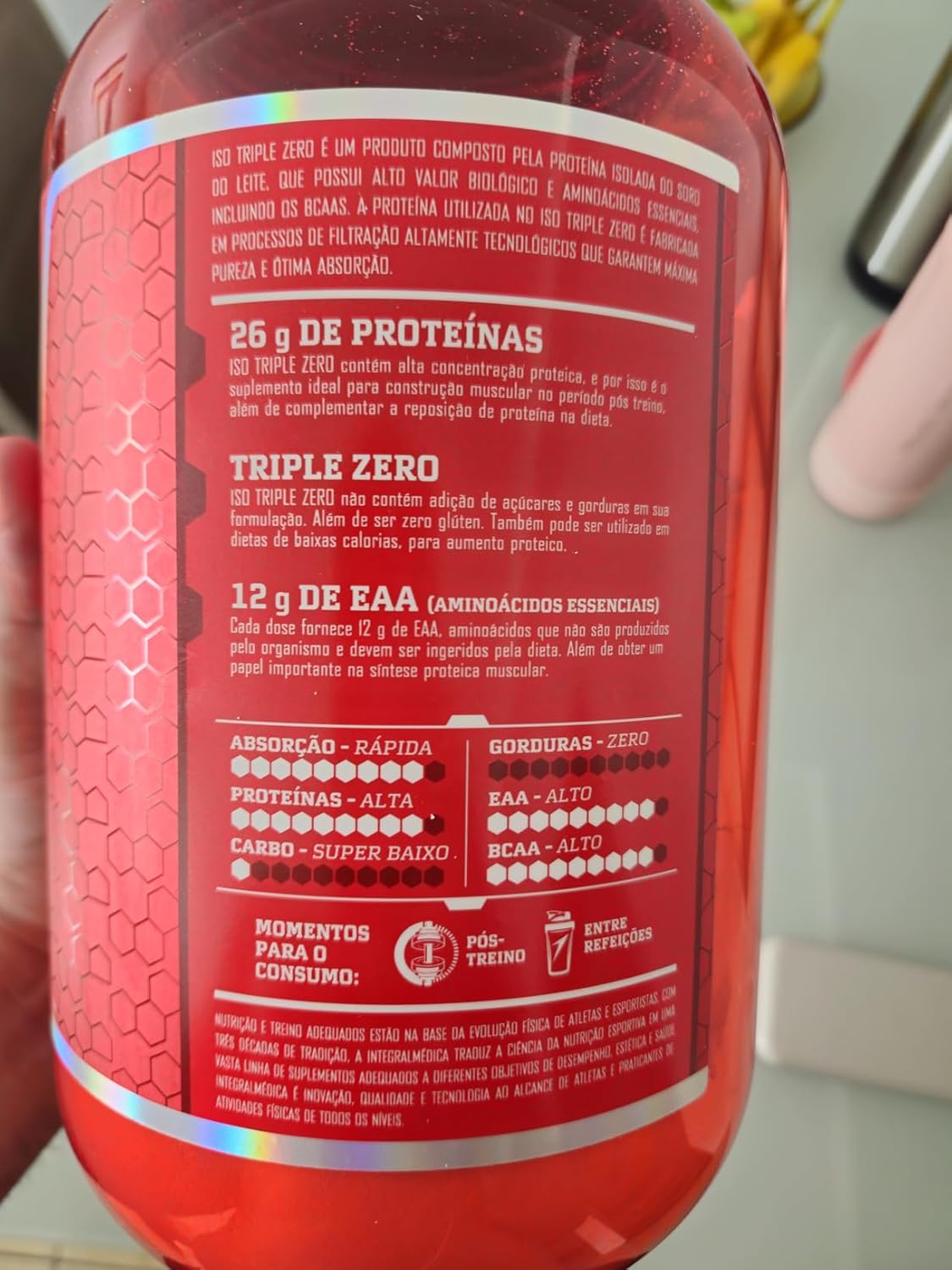 - 【PROTEÍNA DE ALTO VALOR BIOLÓGICO】O Iso Triple Zero da Integralmédica oferece 26g de proteínas por porção, com alta concentração de aminoácidos essenciais e 6g de BCAA, essenciais para a construção muscular e recuperação pós-treino.