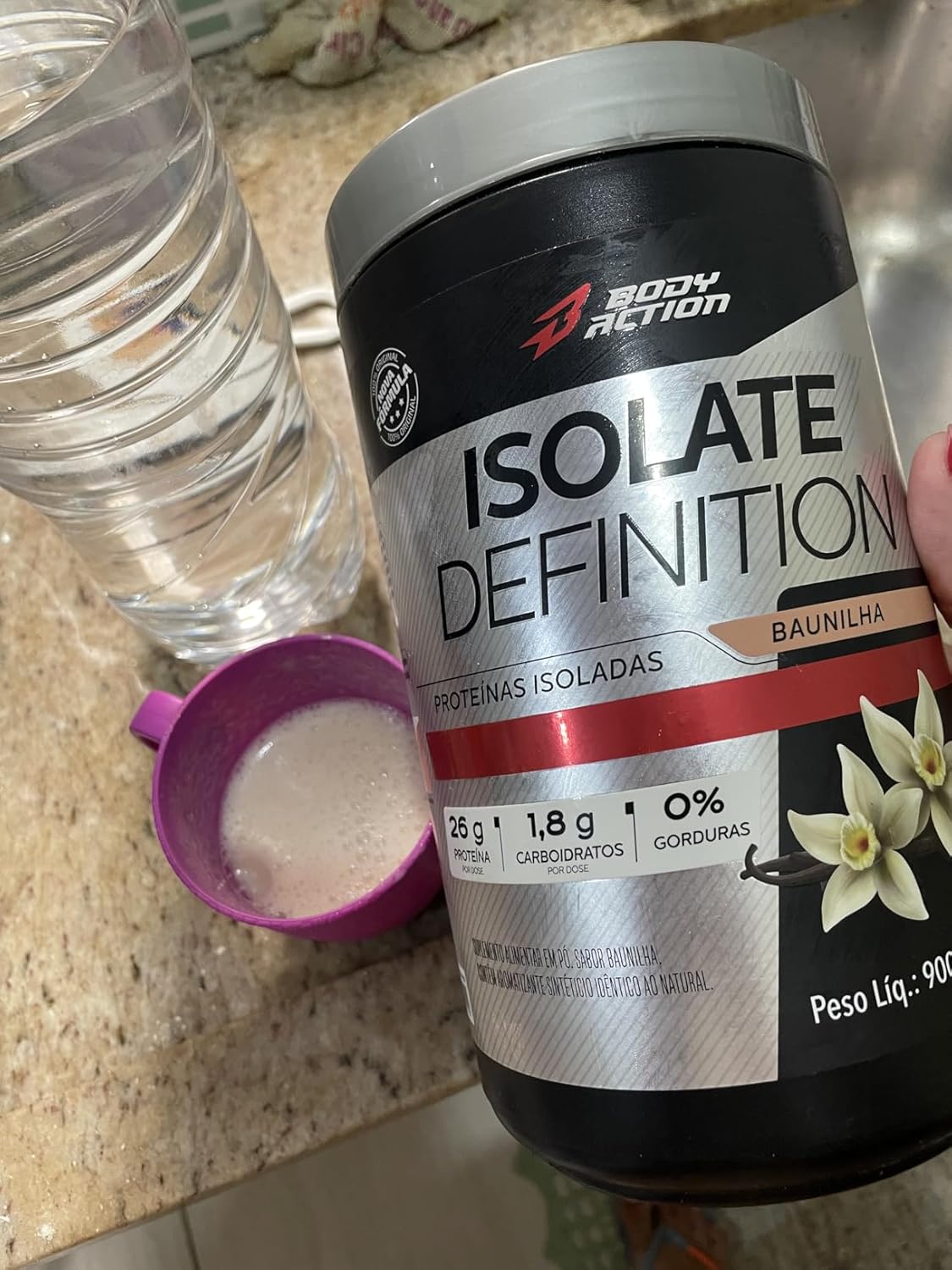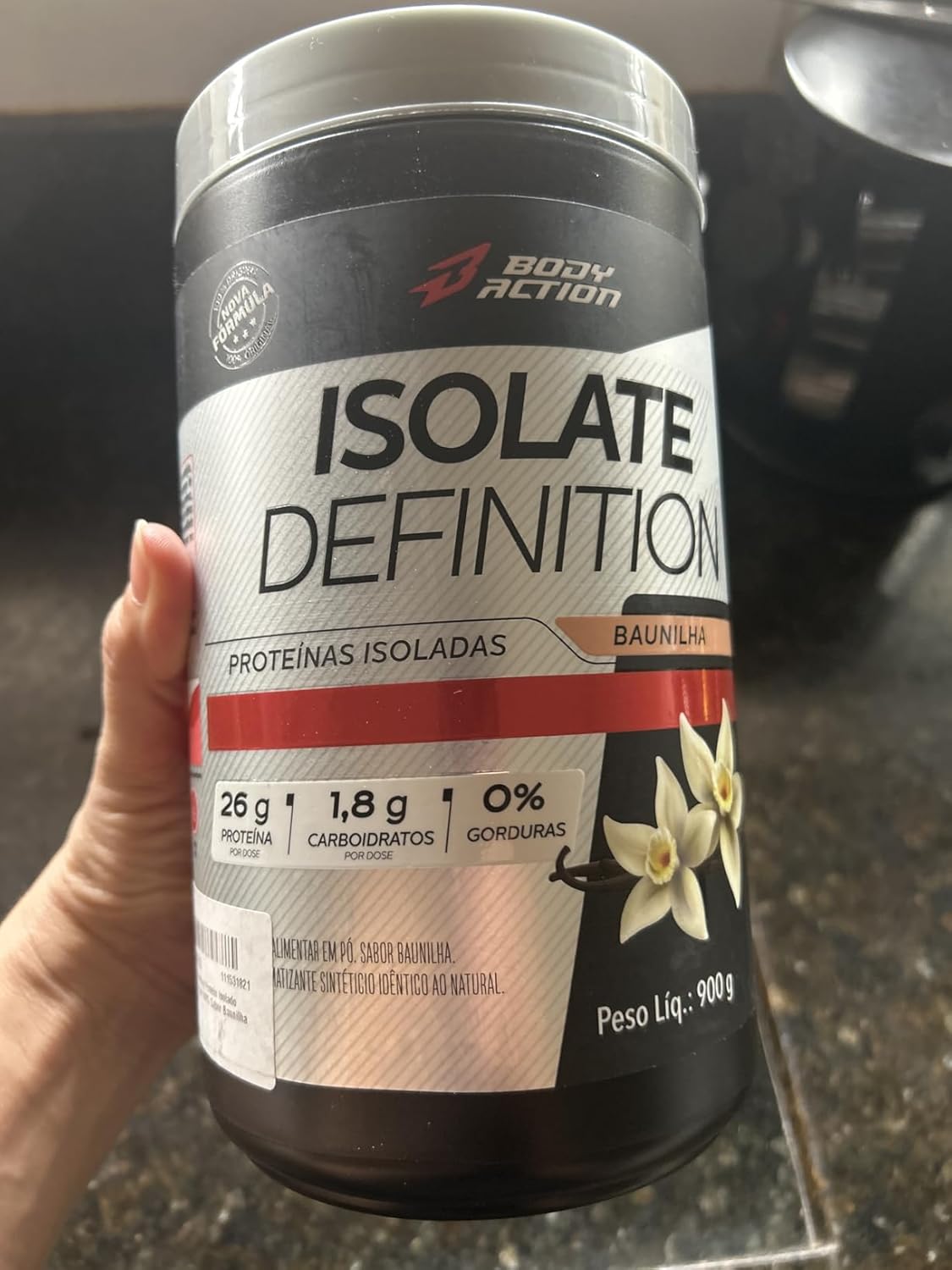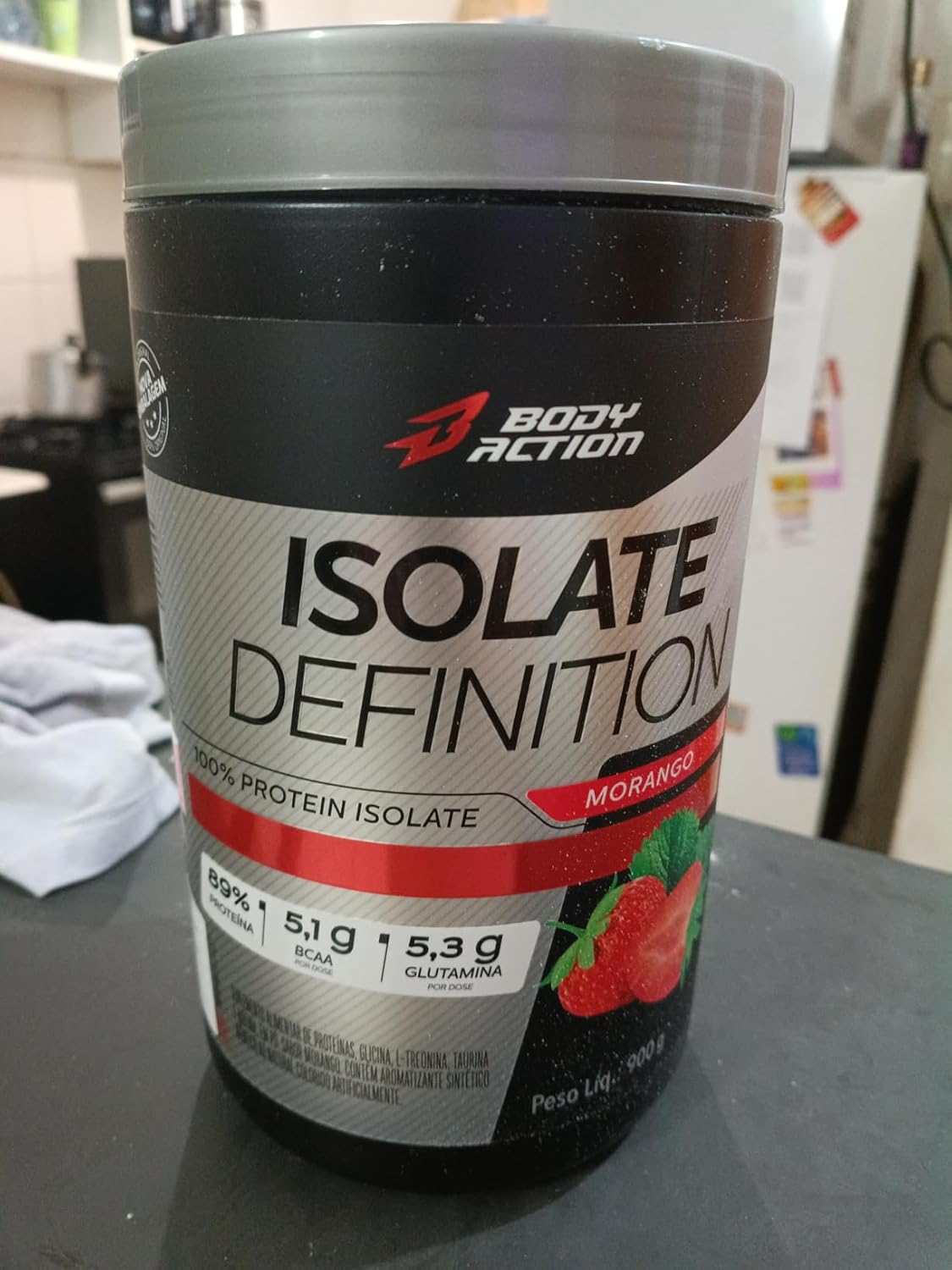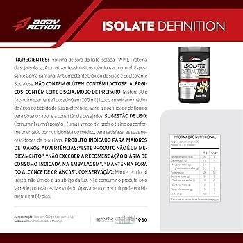 Isolate definition – body action isolate definition bodyaction é uma das melhores proteínas isoladas na relação custo x benefício do mercado, trazendo uma excelente proposta para aqueles que buscam crescimento muscular sem riscos de acumulo de gordura corporal, ou para aqueles que buscam uma maior definição muscular, aliando baixo custo e qualidade. formada através do isolamento da proteína do soro do leite por fluxo cruzado (cft ? exchange whey protein isolate) e por soy protein isolate (proteína isolada da soja premium), a isolate definition mantém a pureza da proteína e o seu alto valor biológico, reduzindo os níveis de lactose e gorduras. isolate definition é rica em aminoácidos essenciais, substratos indispensáveis em diversos processos metabólicos, incluindo uma adequada síntese proteica muscular. a mistura de whey protein isolada com proteína isolada de soja elabora um produto rico em bcaa (aminoácidos de cadeia ramificada) e glutamina, importantes aminoácidos envolvidos na melhora do sistema imunológico, que agem também como substratos para o fortalecimento das células do intestino e principalmente como recuperadores das células musculares. benefícios por ser constituída de 89% de proteínas em sua composição, a isolate bodyaction apresenta 5,1g de bcaa e 5,3g de glutamina por dose, tornando o produto excelente para atletas e praticantes de atividades físicas que necessitam aumentar o aporte proteico diário. entre outros benefícios podemos citar: melhora no ganho de massa muscular; ajuda na definição muscular; alto valor biológico; rápida digestão e absorção; zero gorduras; zero glúten; excelente custo x benefício. apresentação: potes com 450g, 900g e 2kg; embalagens stand up pouch 1,8kg.
