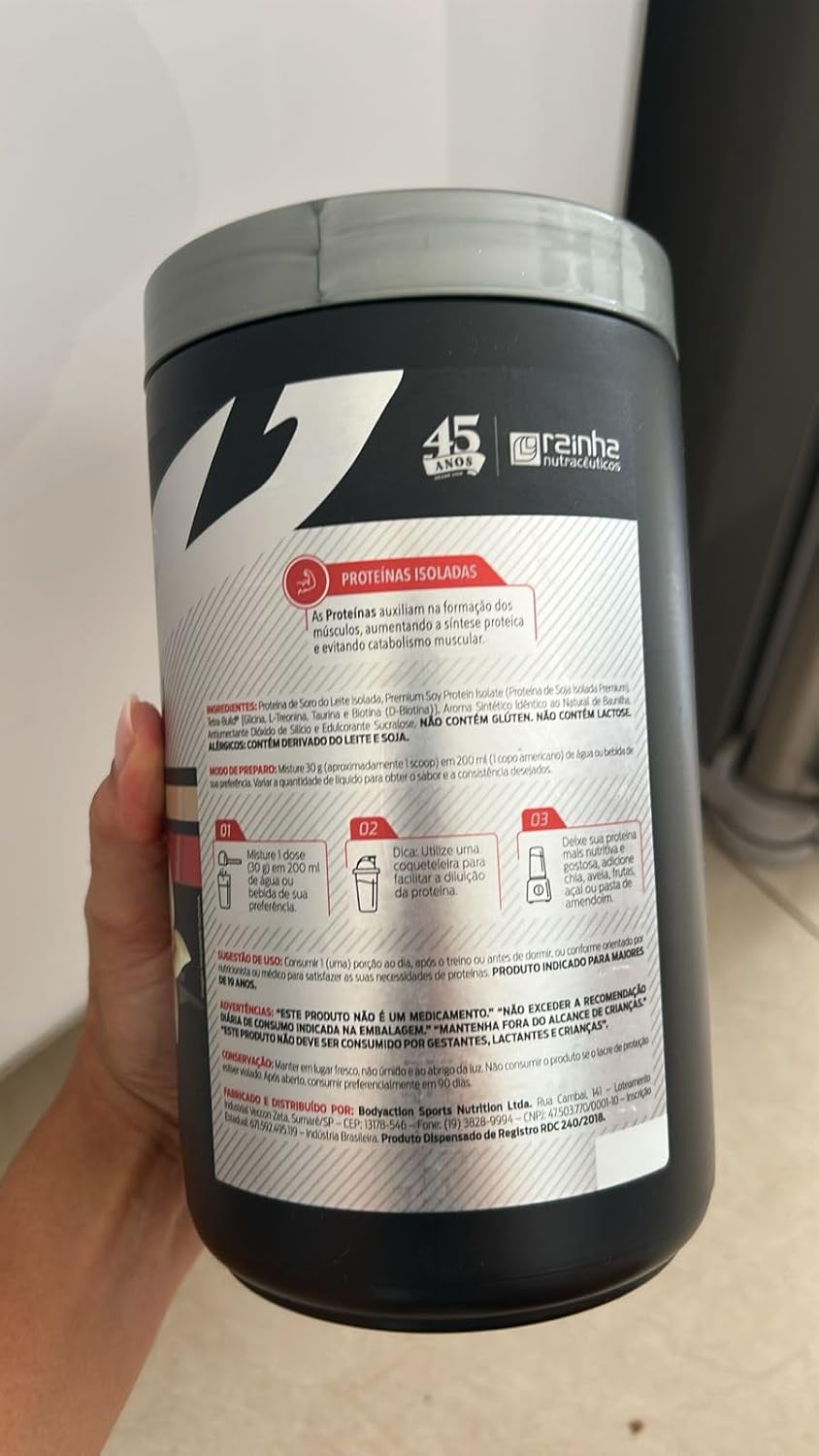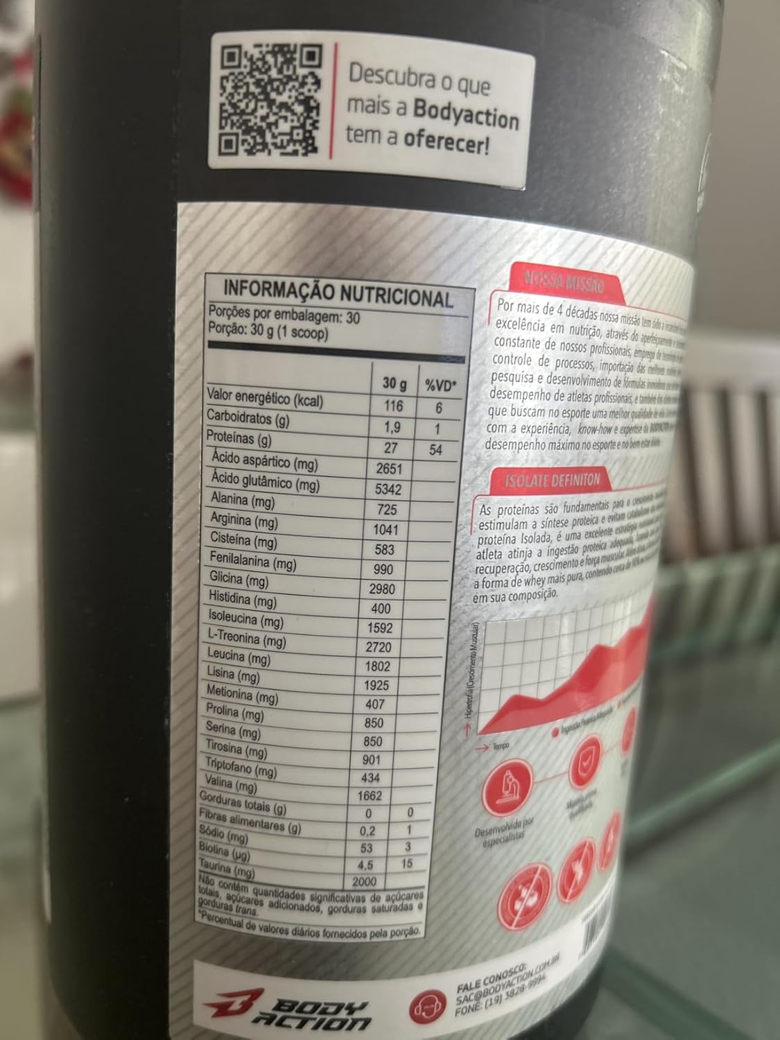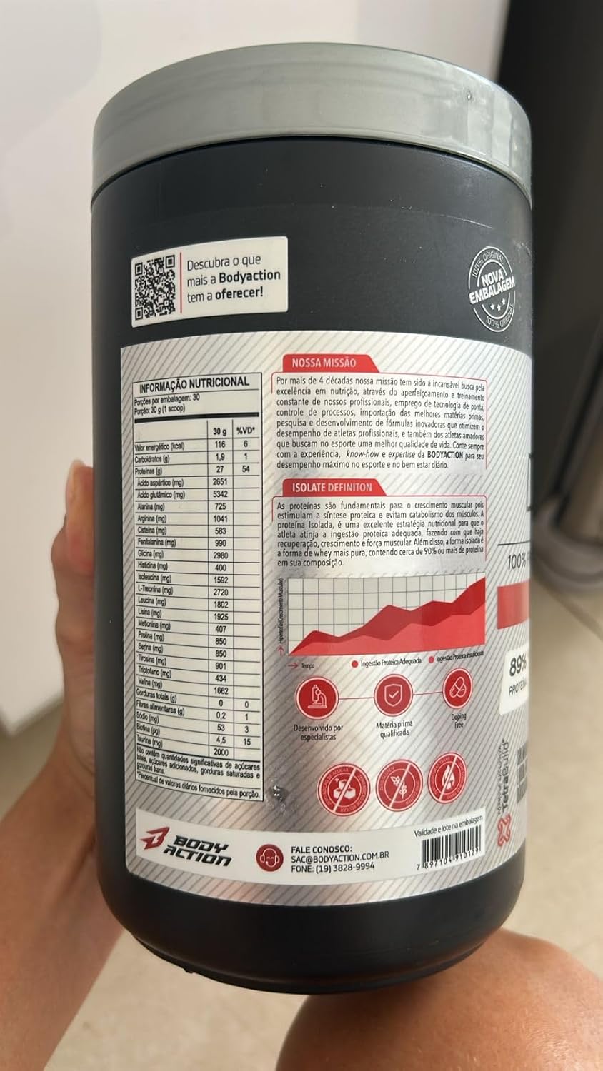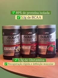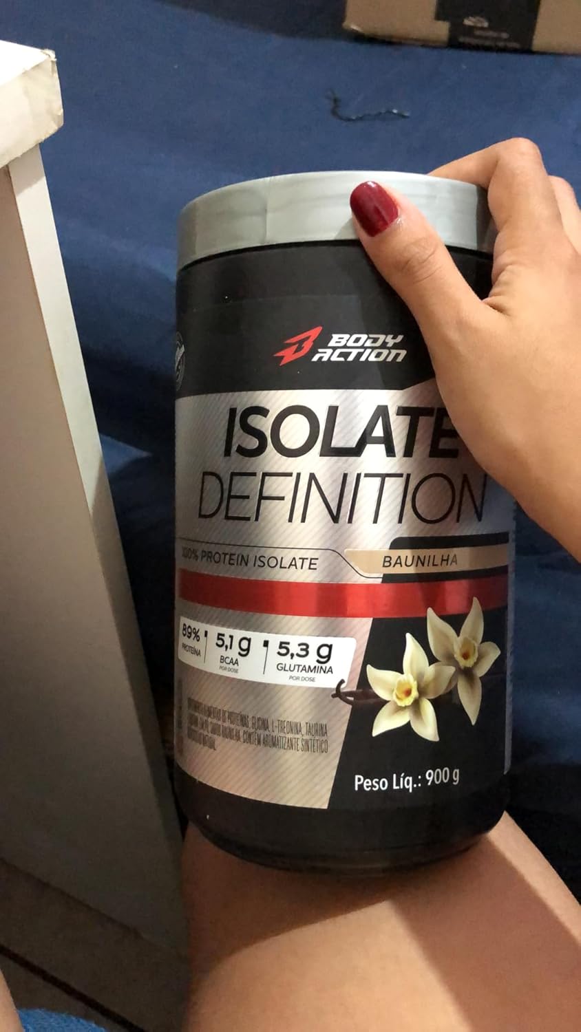 Isolate definition – body action isolate definition bodyaction é uma das melhores proteínas isoladas na relação custo x benefício do mercado, trazendo uma excelente proposta para aqueles que buscam crescimento muscular sem riscos de acumulo de gordura corporal, ou para aqueles que buscam uma maior definição muscular, aliando baixo custo e qualidade. formada através do isolamento da proteína do soro do leite por fluxo cruzado (cft ? exchange whey protein isolate) e por soy protein isolate (proteína isolada da soja premium), a isolate definition mantém a pureza da proteína e o seu alto valor biológico, reduzindo os níveis de lactose e gorduras. isolate definition é rica em aminoácidos essenciais, substratos indispensáveis em diversos processos metabólicos, incluindo uma adequada síntese proteica muscular. a mistura de whey protein isolada com proteína isolada de soja elabora um produto rico em bcaa (aminoácidos de cadeia ramificada) e glutamina, importantes aminoácidos envolvidos na melhora do sistema imunológico, que agem também como substratos para o fortalecimento das células do intestino e principalmente como recuperadores das células musculares. benefícios por ser constituída de 89% de proteínas em sua composição, a isolate bodyaction apresenta 5,1g de bcaa e 5,3g de glutamina por dose, tornando o produto excelente para atletas e praticantes de atividades físicas que necessitam aumentar o aporte proteico diário. entre outros benefícios podemos citar: melhora no ganho de massa muscular; ajuda na definição muscular; alto valor biológico; rápida digestão e absorção; zero gorduras; zero glúten; excelente custo x benefício. apresentação: potes com 450g, 900g e 2kg; embalagens stand up pouch 1,8kg.