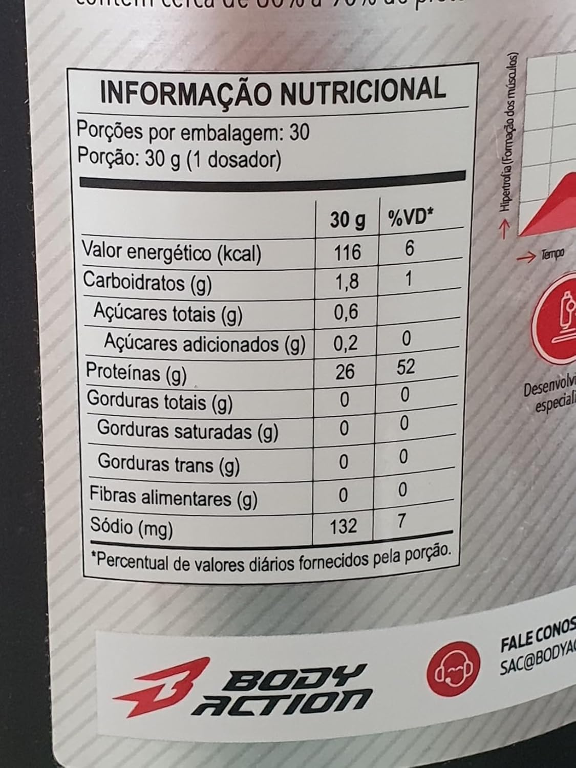 DEFINIÇÃO ISOLADA – AÇÃO DO CORPO Isolar Definição Bodyaction é uma das melhores proteínas isoladas na relação custo x benefício do mercado, trazendo uma excelente proposta para aqueles que buscam crescimento muscular sem riscos de acúmulo de gordura corporal, ou para aqueles que buscam uma definição maior muscular, aliando baixo custo e qualidade . Formada através do isolamento da proteína do soro do leite por fluxo cruzado (CFT ? Exchange Whey Protein Isolate) e pela Proteína Isolada de Soja Premium (Proteína Isolada da Soja Premium), a Isolate Definition mantém a pureza da proteína e o seu alto valor biológico, reduzindo os níveis de lactose e gorduras. A Definição Isolada é rica em aminoácidos essenciais, substratos indispensáveis ??em diversos processos metabólicos, incluindo uma síntese protéica muscular adequada. Uma mistura de Whey Protein Isolada com Proteína Isolada de Soja elabora um produto rico em BCAA (Aminoácidos de Cadeia Ramificada) e Glutamina, importantes aminoácidos envolvidos na melhoria do sistema imunológico, que também são como substratos para o fortalecimento das células do intestino e principalmente como recuperadores de células musculares. BENEFÍCIOS Por conter 89% de proteínas em sua composição, o Isolate BodyAction apresenta 5,1g de BCAA e 5,3g de Glutamina por dose, tornando o produto excelente para atletas e praticantes de atividades físicas que aumentam o esporte proteico diário. Entre outros benefícios podemos citar:> Melhora no ganho de massa muscular;> Ajuda na definição muscular;> Alto valor biológico;> Rápida digestão e absorção;> Zero gorduras;> Zero glúten;> Excelente custo x benefício.