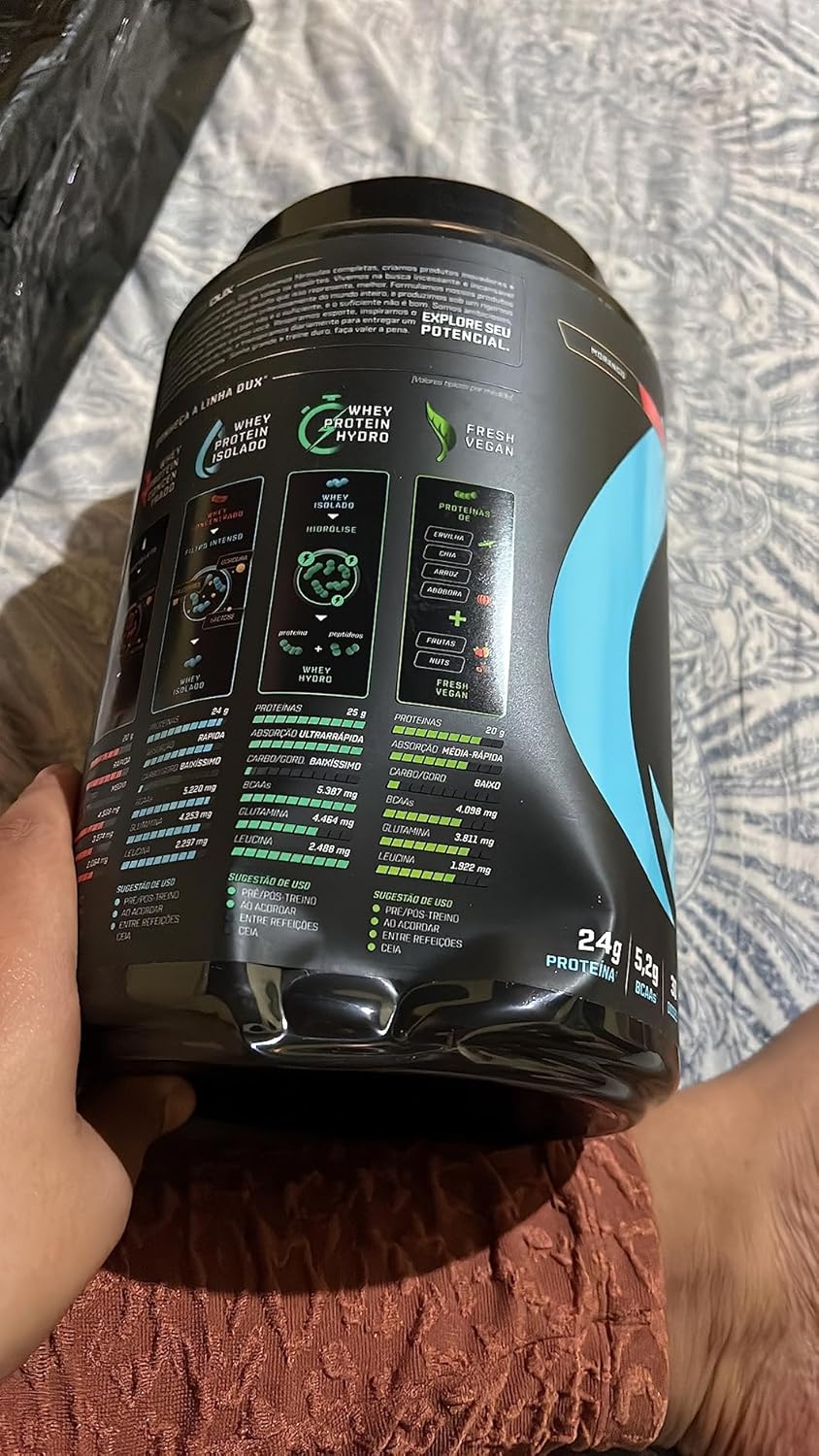 Whey Protein Isolado Pote (900g) – Dux Nutrition O Whey Protein Isolado Dux Nutrition possui baixo teor de gorduras e carboidratos, sendo ideal para construção e recuperação muscular sem perda de definição, como um snack fit prático ou sem culpa em suas receitas. Uma proteína 100% pura, duplamente filtrada, sem adição de outro tipo de Whey ou de proteínas inferiores. Se há um nutriente indispensável, é a proteína. Ela é feita de aminoácidos, que são os blocos de construção do nosso corpo. A proteína do soro do leite, em inglês ?Whey Protein?, é uma das fontes de aminoácidos de melhor absorção, maior até que o frango ou peixe. Isso torna o Whey uma forma conveniente de ingerir proteína, melhorando a saúde, o bem-estar e os resultados dos treinos. BENEFÍCIOS > Matéria-prima premium importada, obtida através do processo de extração de microfiltragem, sem renunciar do sabor real das nossas proteínas;> Aporte completo de aminoácidos: 6,2g de BCAAs; 4,7g de glutamina e 2,9g de leucina, por dose;> 24g de proteína;> Disponível em versões sem adoçantes artificiais, 100% naturais;> O nome diz tudo: Whey Protein Isolado 100% puro, com transparência total, do nome do produto à lista de ingredientes;> Não contém goma xantana, complexos vitamínicos à base de maltodextrina, espessantes, estabilizantes, conservantes ou qualquer outro ingrediente inferior;> Proteína moderna, desenvolvida por especialistas para atletas de esportes de performance (bodybuilding, crossfit e artes marciais), pessoas que buscam uma proteína com baixa caloria (para snacks fit e receitas sem culpa) e pessoas que buscam uma proteína ultrapura de altíssima qualidade;> Contém corantes 100% naturais, sem ingredientes artificiais. Embalagem disponível: pote contendo suplemento na forma de pó. Sabores: Baunilha, Chocolate, Coco e Morango. Peso Líquido: 900g